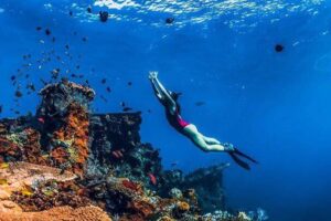 Thanks to protective reefs and mangrove coverage, the waters in Banyuwedang stay calm throughout the year. As a result, the bay is ideal for swimming and beginner-friendly snorkeling. Just a few meters from shore, you’ll find colorful fish and vibrant coral gardens.